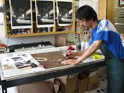 Toru Sugita is a Japanese-American artist and acclaimed printmaker based in the San Francisco Bay Area whose work draws on light, shadow, architecture, and everyday spaces to create richly detailed etchings, aquatints, wood engravings, and prints that explore form, space, and visual perception.